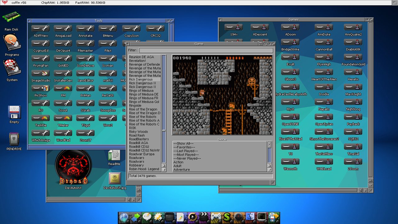 | RAM | 512 KB Chip RAM (bővíthető max. 9 MB-ig: 512 KB Chip RAM + 512 KB Slow RAM + 8 MB Fast RAM) |